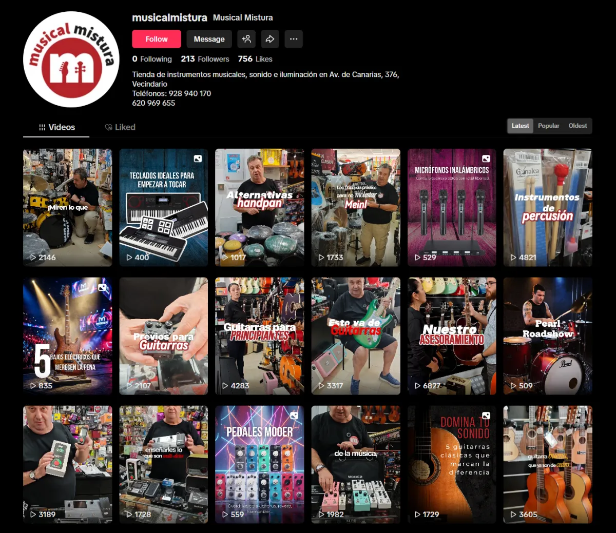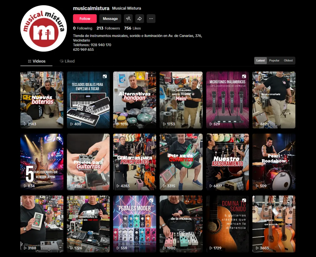 Musical Mistura es una tienda especializada en instrumentos musicales ubicada en Vecindario (Gran Canaria). El objetivo del proyecto fue modernizar su presencia digital y convertir sus redes sociales en un canal real de visibilidad, descubrimiento de productos y conexión con músicos locales.